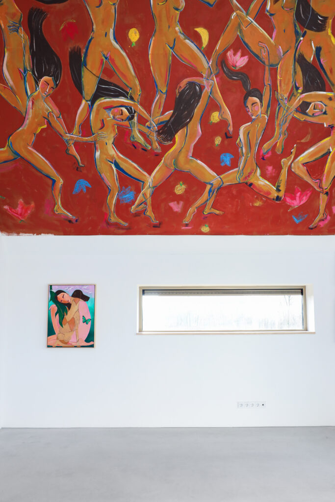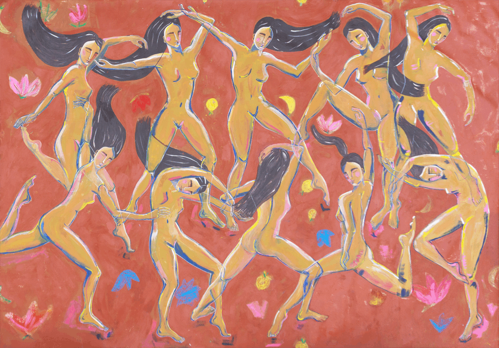 The Dancers, 300x430cm, acrylic and oil stick on linen, available via Mini Galerie